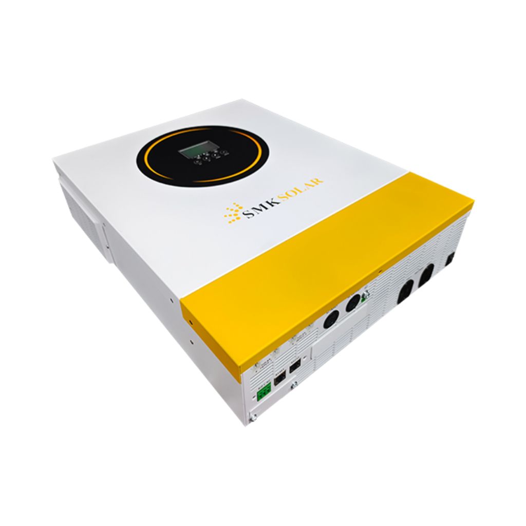 The SMK EM11000-48 is the pinnacle of the SMK inverter lineup. With a Power Factor of 1.0, it delivers a staggering 11,000W of continuous Pure Sine Wave power. What truly sets this “monster” unit apart is its Dual MPPT Solar Chargers, allowing you to connect two separate strings of solar panels (up to 11kW total) facing different directions to maximize energy harvest throughout the day.
